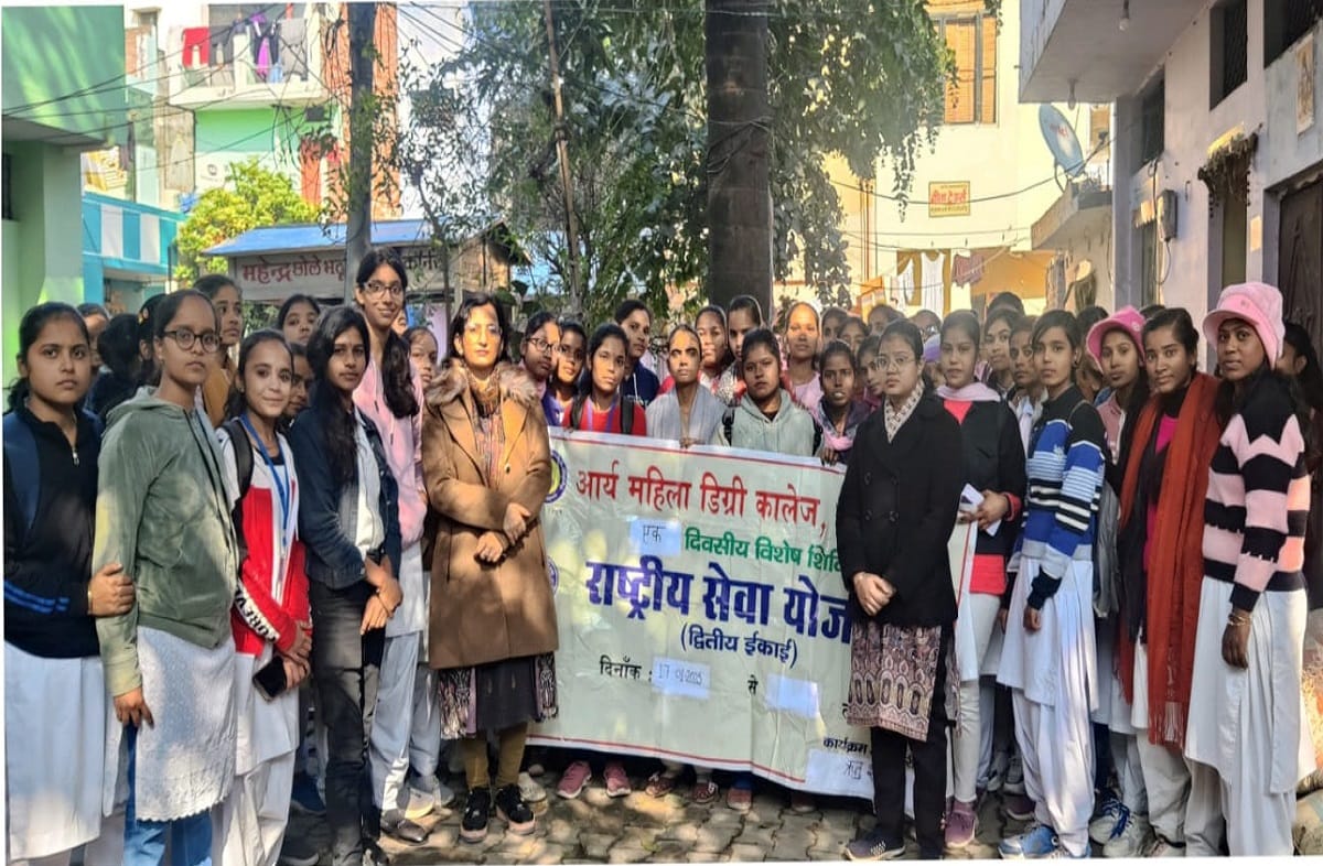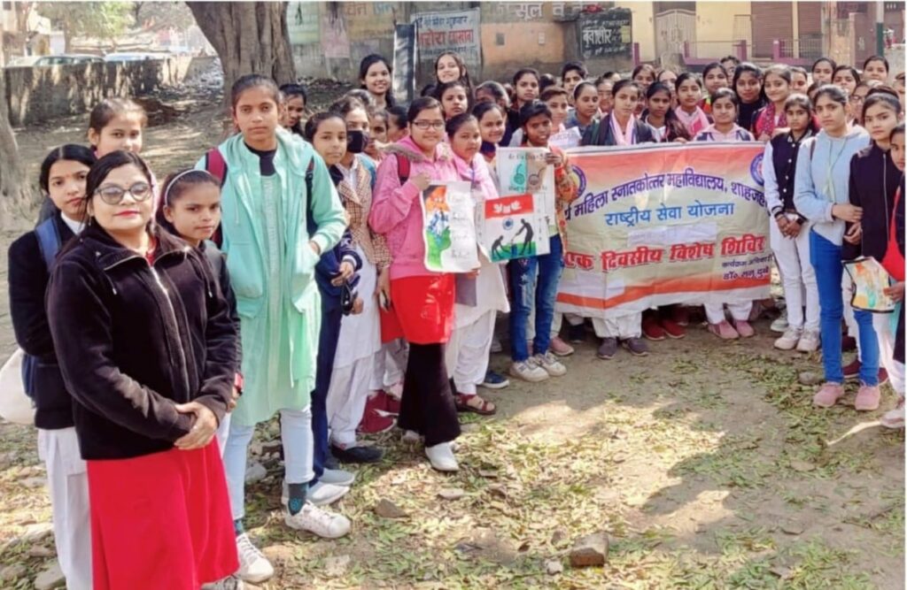 और शिविर के द्वारा राष्ट्र सेवा की भावना से सभी को जागरूक करने हेतु प्रेरित किया। प्रथम इकाई की स्वयंसेविकाए डॉ रानू दुबे के निर्देशन में सराय खिरनीबाग एवं द्वितीय इकाई की स्वयंसेविकाए सुश्री ऋतु शर्मा के निर्देशन में हाजी बिल्डिंग में एक रैली लेकर गई। स्वच्छता के प्रति जागरूकता’ के बारे में जानकारी देते हुए आसपास के लोगों एवं राहगीरों को भी स्वछता के प्रति जागरूक किया कूड़ेदान का उपयोग करने हेतु, एवं आस पास साफ सफ़ाई रखने हेतु सभी से अपील। इसी के साथ स्वछता पर नारे लगाते हुए सभी को स्वछता के प्रति प्रेरित किया।