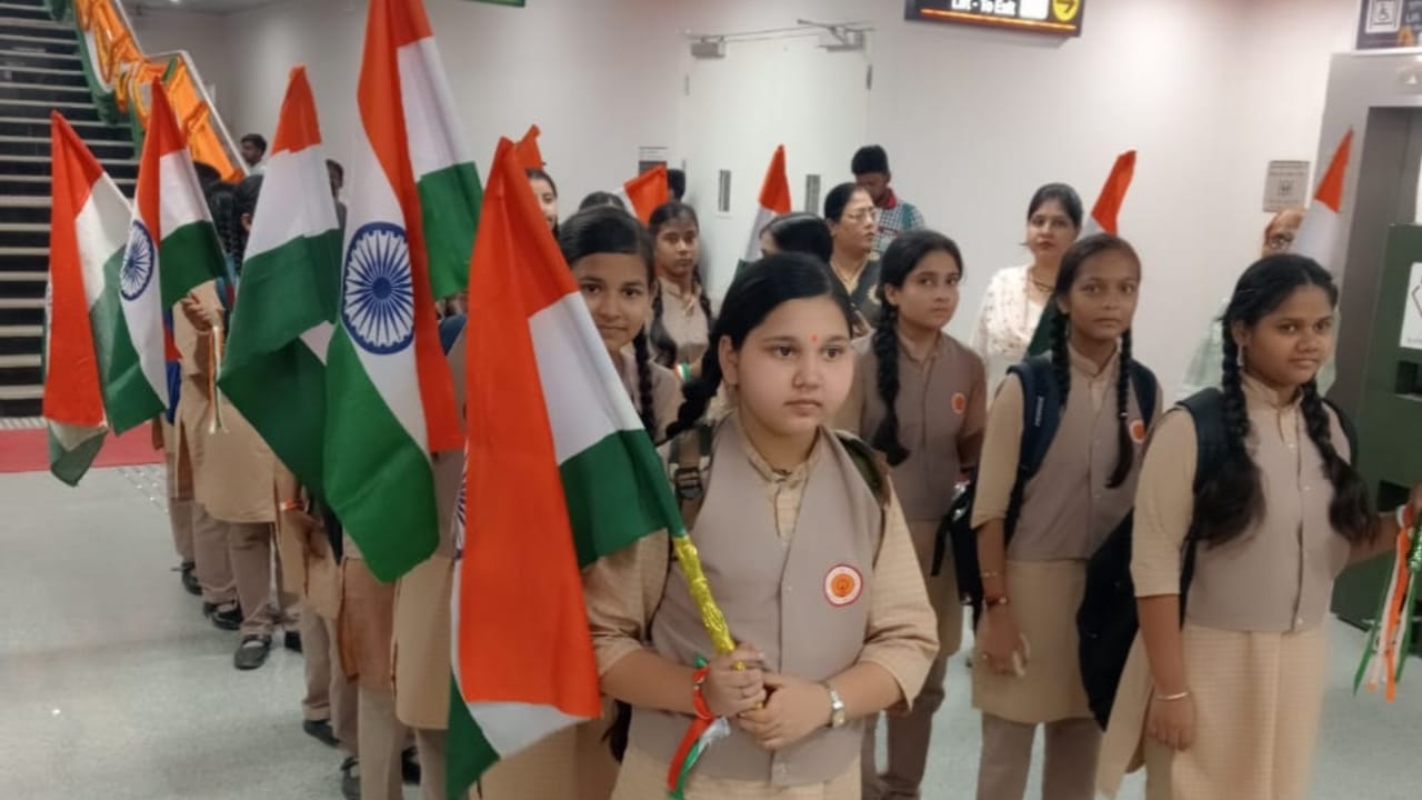 - तिरंगा यात्रा का उत्साह: कार्यक्रम का एक भावुक और देशभक्तिपूर्ण पल तब देखने को मिला जब नयागंज मेट्रो रेलवे स्टेशन के लोकार्पण के तुरंत बाद, स्कॉलर्स प्लेवेज इंटर कॉलेज के विद्यार्थियों ने एक जोशीली तिरंगा यात्रा निकाली। बच्चों के “भारत माता की जय” और “हिंदुस्तान जिंदाबाद” के नारों से पूरा माहौल देशभक्ति में सराबोर हो गया।