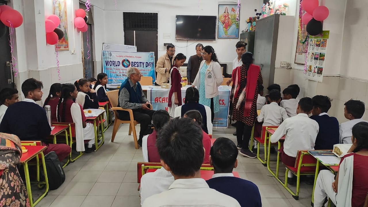 कानपुर। मोहम्मद उस्मान कुरैशी। आज अकादमी ऑफ पीडियाट्रिक्स द्वारा प्रेरणा विद्यालय, छोटी गयटिया में एक स्वास्थ्य शिविर का आयोजन किया गया, जिसमें विद्यालय के 65 विद्यार्थियों का शारीरिक विकास मूल्यांकन किया गया। इस दौरान बच्चों की लंबाई, वजन तथा बीएमआई मापा गया और उन्हें स्वस्थ जीवनशैली एवं मोटापे से बचाव के प्रति जागरूक किया गया।
