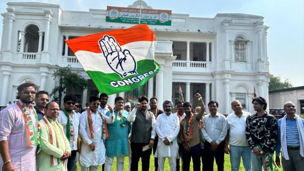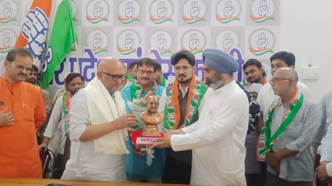 कानपुर। मोहम्मद उस्मान कुरैशी। आज कानपुर के वरिष्ठ कांग्रेसी नेता अवनीश सलूजा जी के नेतृत्व में लखनऊ कांग्रेस पार्टी कार्यालय में उत्तर प्रदेश कांग्रेस कमेटी के अध्यक्ष माननीय अजय राय जी (पूर्व मंत्री) जी द्वारा रमणीक चतुर्वेदी (एड.) जी के साथ दर्जनों अधिवक्ताओं ने कांग्रेस पार्टी की सदस्यता ग्रहण की, तथा सदस्यता ग्रहण करने वालों में नवीन चतुर्वेदी (चतुर्वेदी महासभा के अध्यक्ष), आयुष दुबे, आदर्श दुबे (एड.), संतोष दुबे, सर्वेश जयसवाल, शैलेन्द्र शुक्ला, आदित्य मल्होत्रा, आयुष सचान, हसन रिजवी, मानस शिरोमणि, आदित्य अवस्थी, सौरभ बाजपेई, कीर्ति अवस्थी समेत दर्जनों युवाओं ने कांग्रेस पार्टी की सदस्यता ग्रहण कर भारत के संविधान एवं एकता अखंडता को मजबूत करने की शपथ ली इस अवसर पर किसान कांग्रेस नेता नरेन्द्र चंचल कुशवाहा (जिलाध्यक्ष) वरिष्ठ नेता ज्ञानेंद्र अवस्थी, अमित शुक्ला (मोनू) हरिराम कटियार ,इमरान शेख, समीर खान ,इत्यादि लोगों ने बधाई दी।